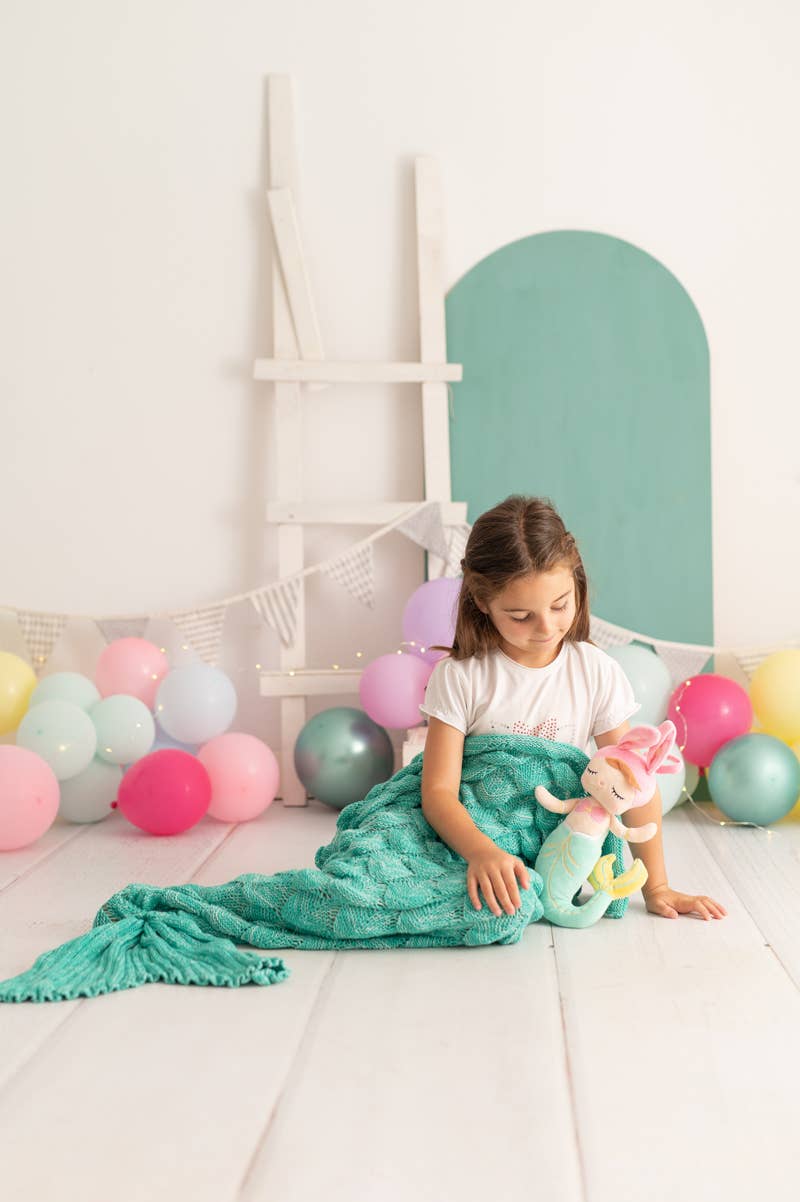 Nuestro Pack está formado por manta cola de sirena y muñeca sirenita haciendo juego.