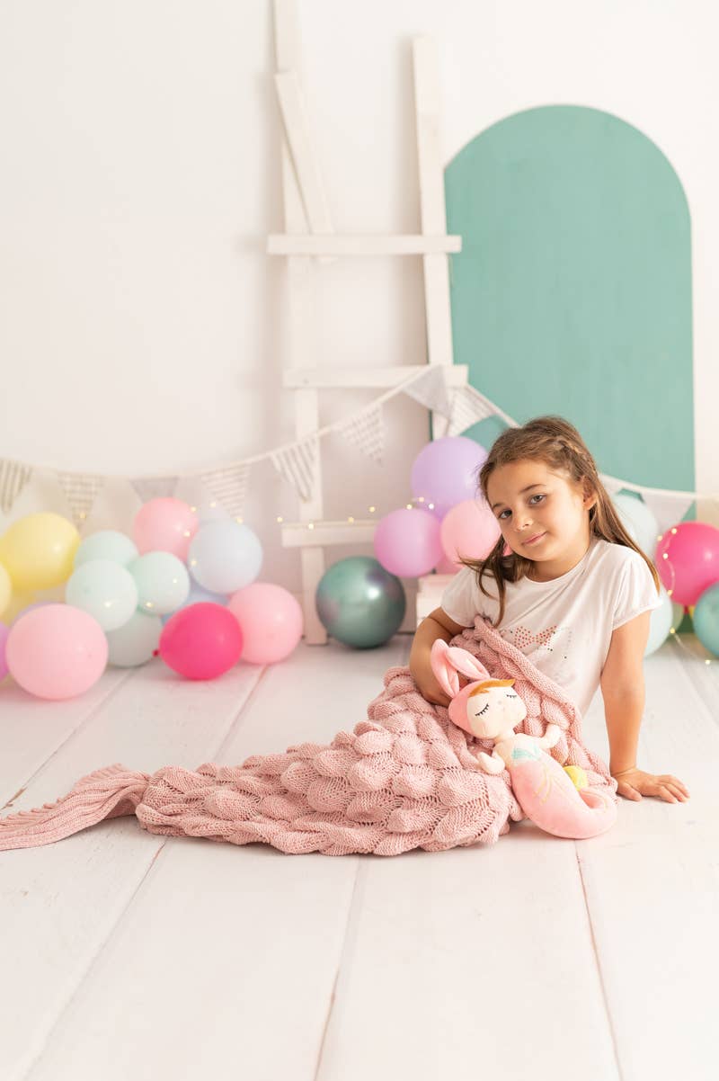 Nuestro Pack está formado por manta cola de sirena y muñeca sirenita en color rosa haciendo juego.