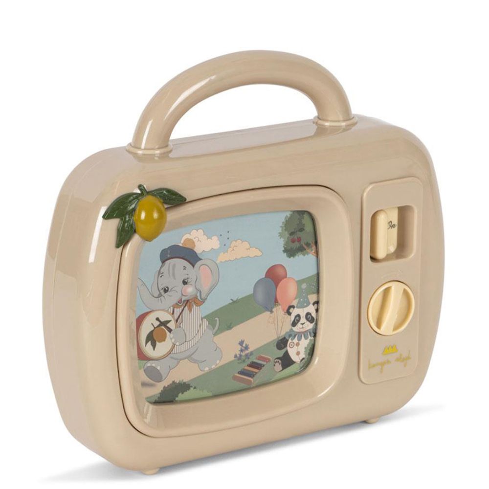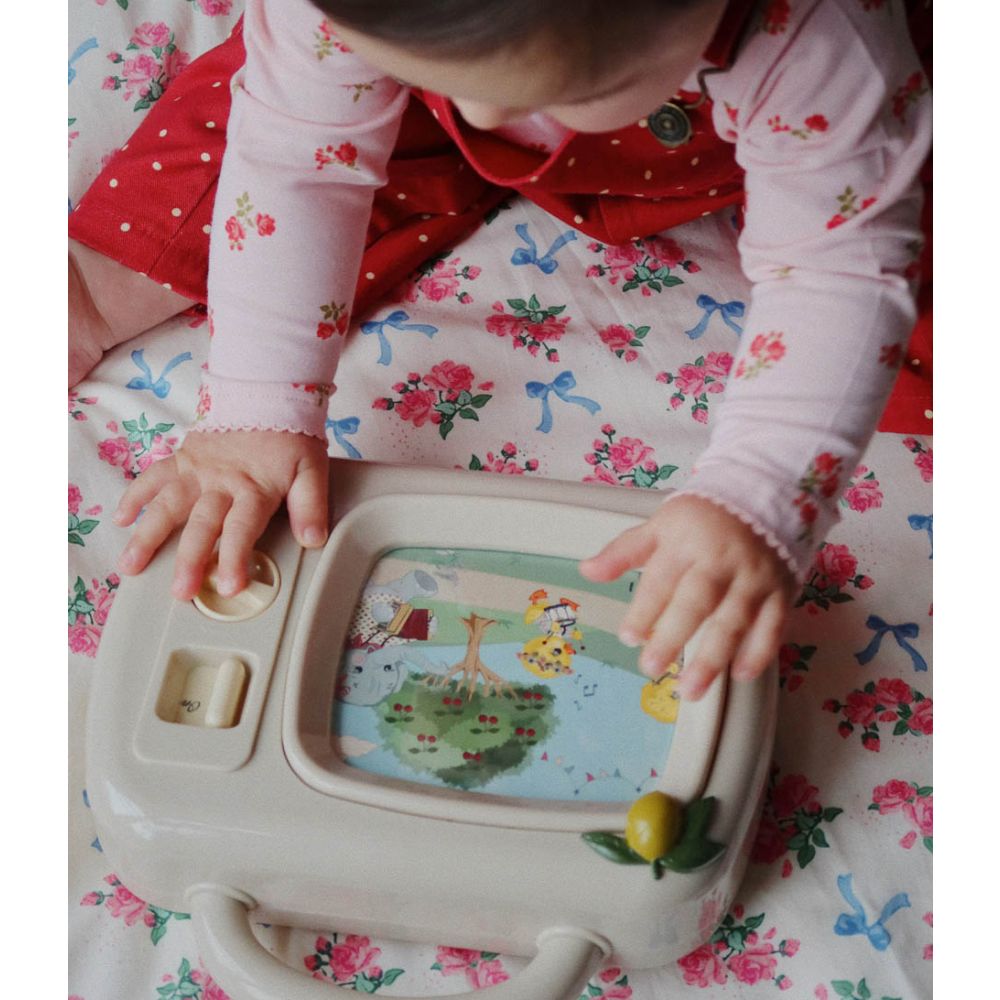 Descubre la magia del juego con My Melody TV, el televisor musical más encantador para los más pequeños. Con su diseño vintage en tono beige y detalles ilustrados, se convierte en un juguete decorativo y educativo a la vez.