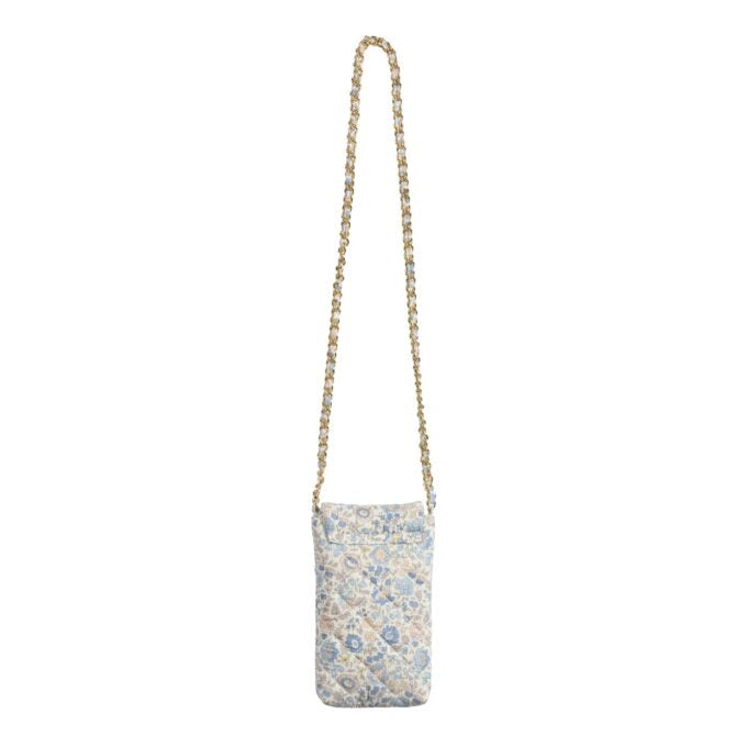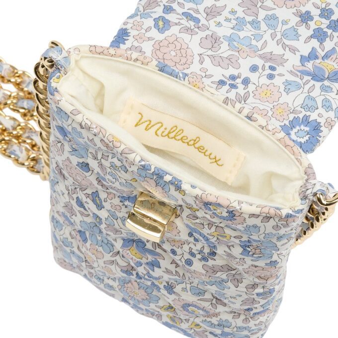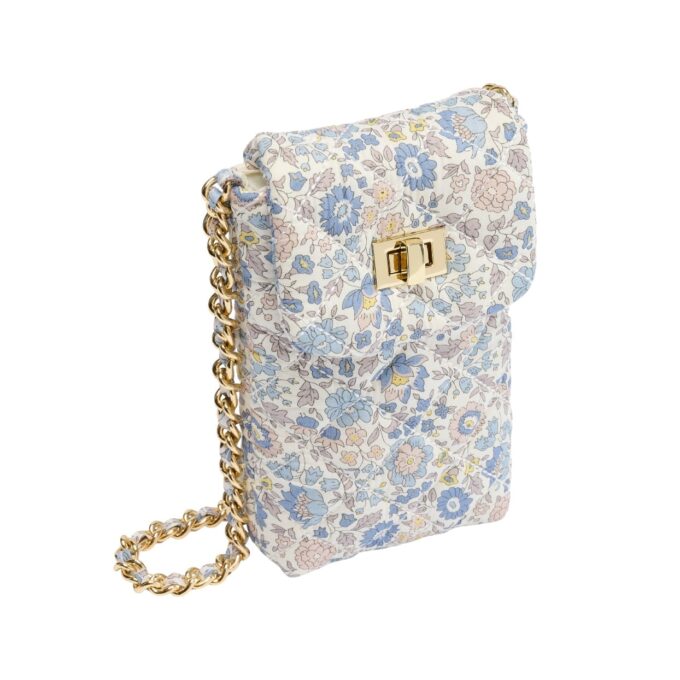 Este delicado bolso porta móvil Milledeux® está confeccionado a mano con auténtico tejido Liberty of London, en el precioso estampado D’Anjo E, lleno de flores en suaves tonos azulados y beige 🌸💙. Un accesorio elegante y práctico, perfecto para añadir un toque romántico y especial a cualquier look.