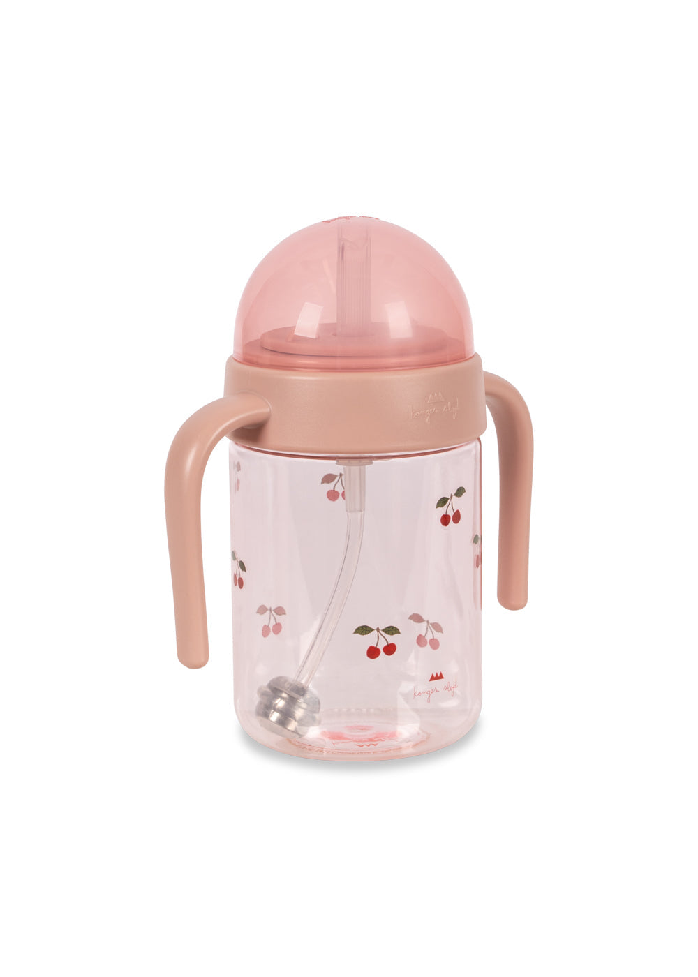 Fabricada en Tritan transparente, es ligera y resistente, con un delicado estampado de cerezas que le da un toque dulce y encantador. La pajita de silicona permite beber fácilmente sin derrames, ideal para llevar al cole, de paseo o usar en casa 💕.