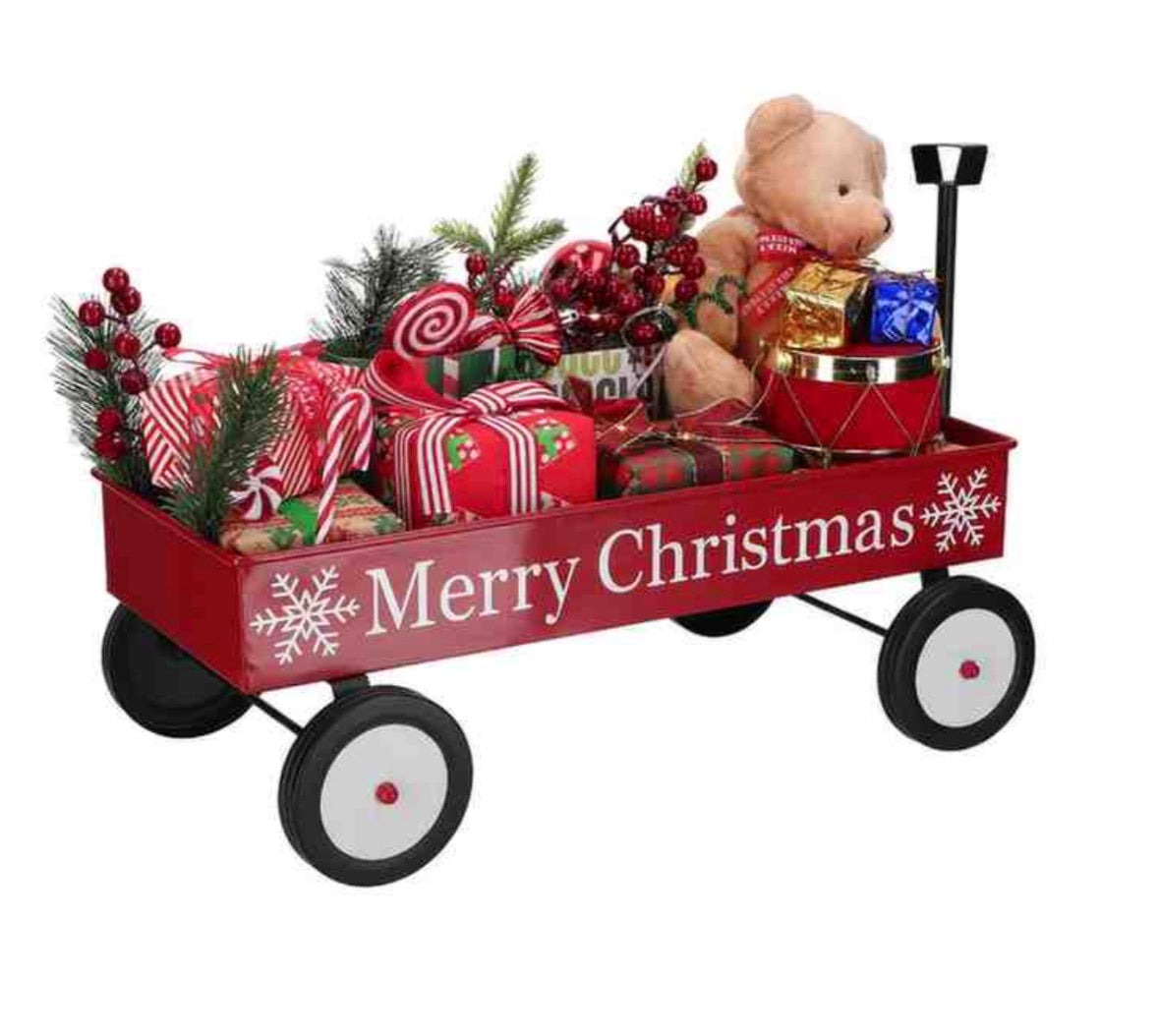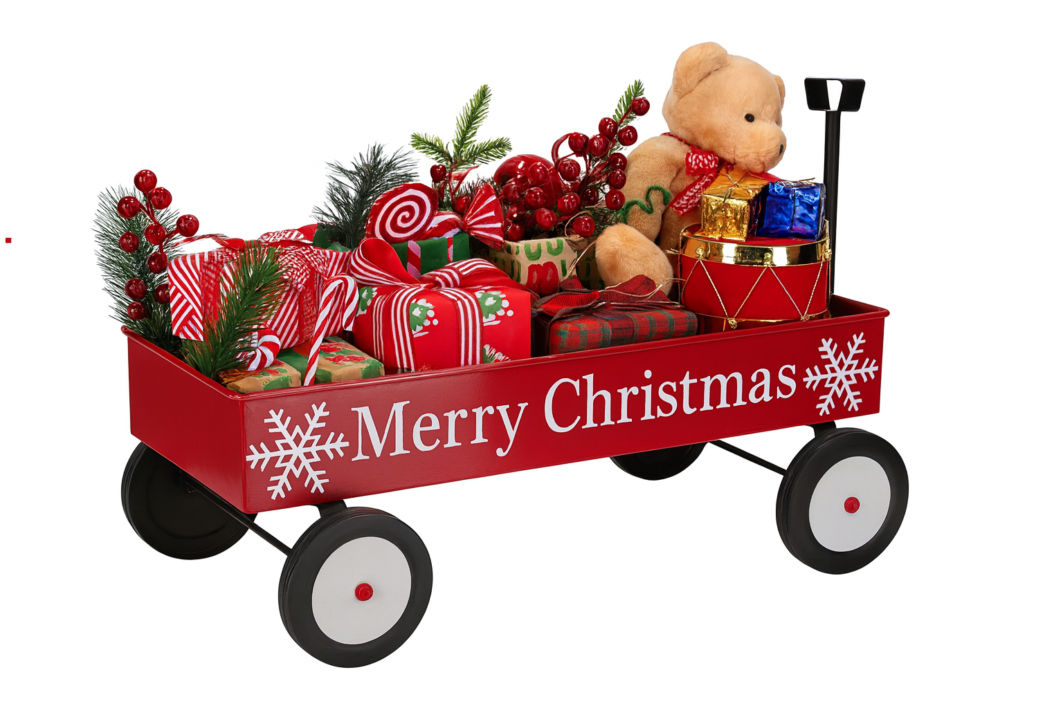 Dale un toque mágico y acogedor a tu hogar con este encantador carrito navideño decorativo con iluminación LED. Su diseño en tonos multicolor y su estructura en rojo con la inscripción “Merry Christmas” lo convierten en una pieza ideal para crear rincones cálidos y llenos de espíritu festivo.