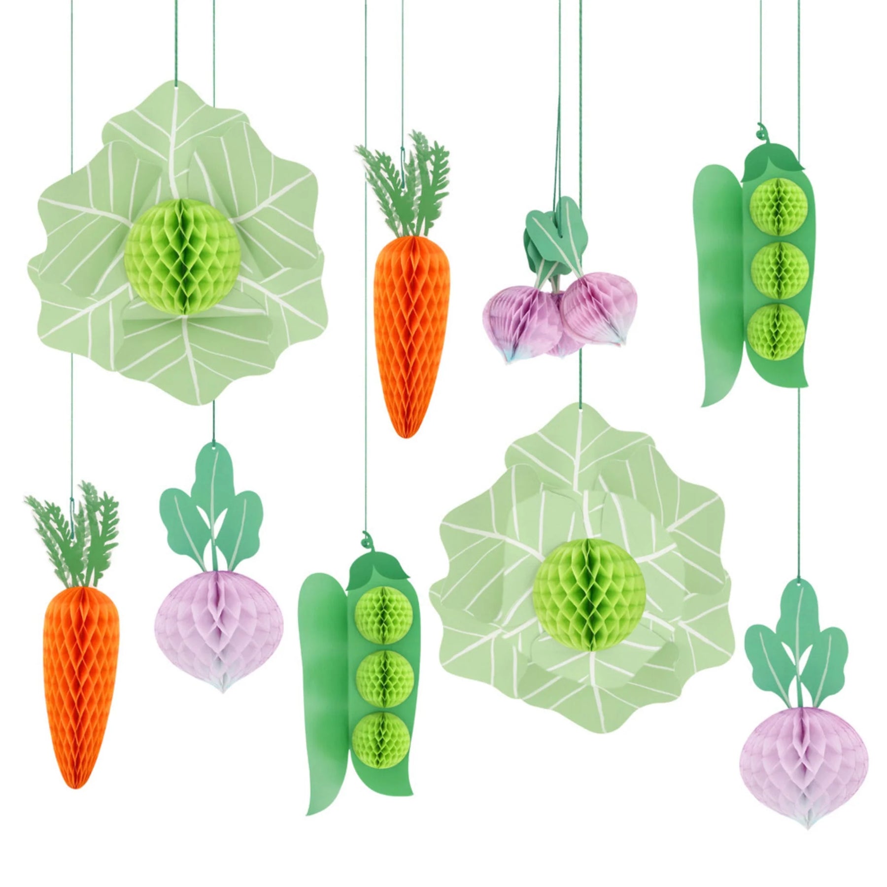 Celebra la Pascua y las fiestas de primavera con este alegre set de decoraciones colgantes de verduras en papel estilo panal, lleno de color y encanto contemporáneo 🌱🥕. Inspiradas en un huerto primaveral, estas piezas aportan un toque original y decorativo a cualquier mesa, ventana o rincón de la casa.