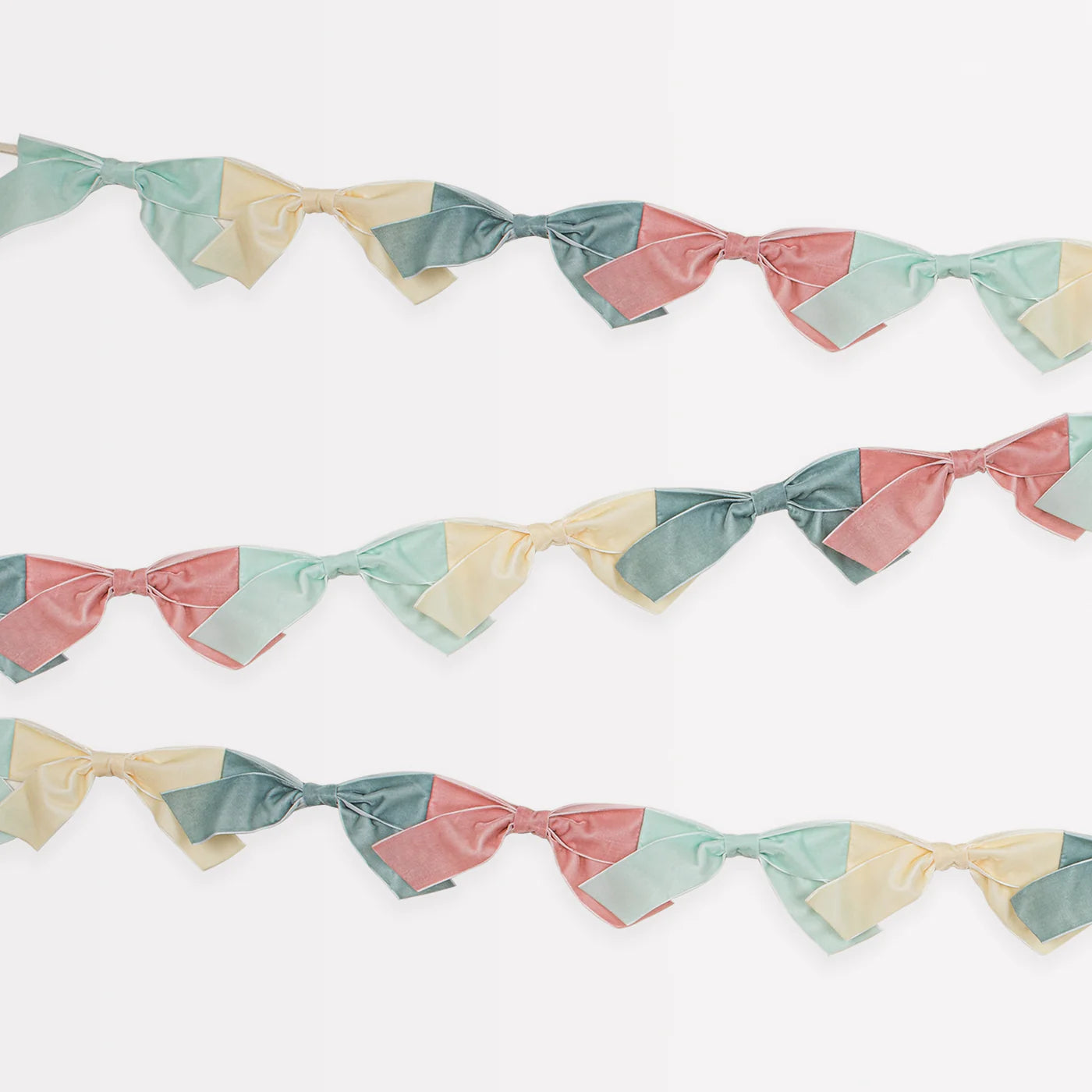 Esta espectacular guirnalda de lazos de terciopelo es el detalle perfecto para transformar cualquier espacio en un ambiente elegante, delicado y lleno de encanto en cuestión de segundos.