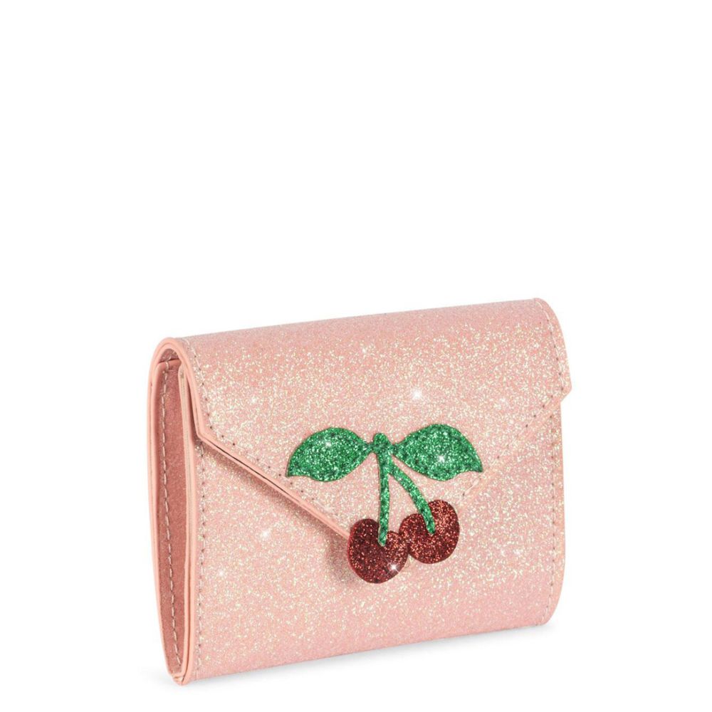 es el accesorio ideal para que los niños guarden sus pequeños tesoros, monedas o billetes de manera segura y con mucho estilo. Su diseño brillante en color rosa con detalle de cerezas glitter 🌸🍒 lo convierte en un complemento alegre y moderno, perfecto para cualquier ocasión.