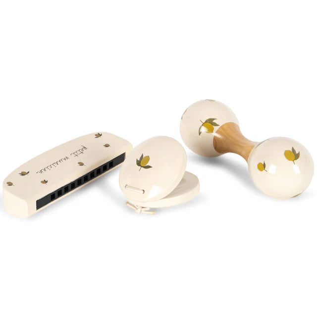 Un set musical con diseño de limones frescos y divertidos 🍋 que convierte cada día en un concierto lleno de alegría. ¡Un regalo ideal para pequeños músicos con mucha creatividad! 🎶💛