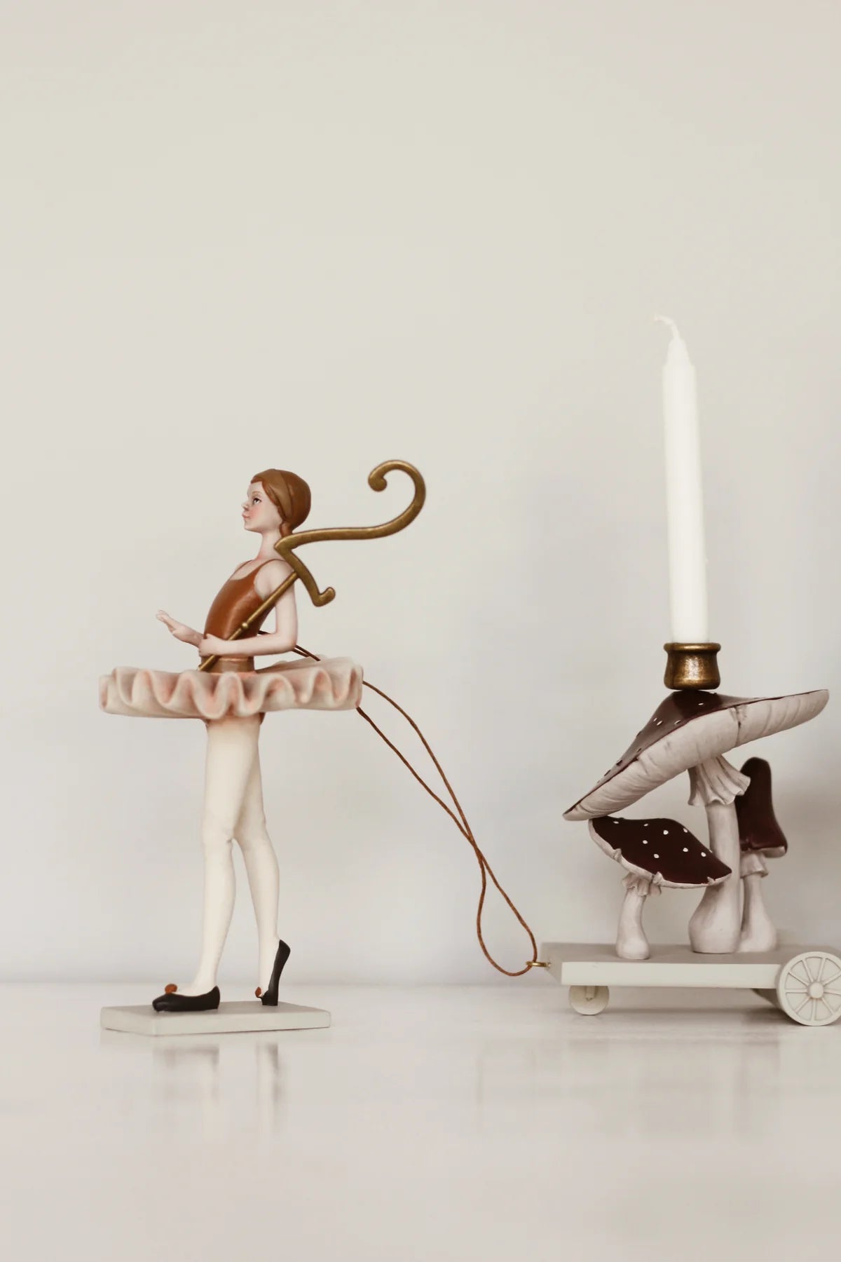 Haz que cada cumpleaños sea inolvidable con este elegante Tren de Cumpleaños de Konges Sløjd, bellamente diseñado con una bailarina que guía un desfile mágico de figuras: un champiñón, un unicornio, unas peras y un pavo real.