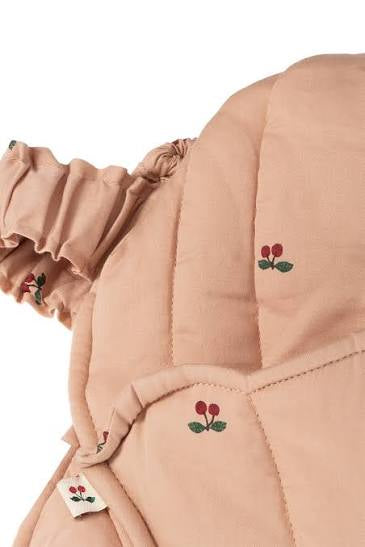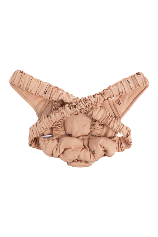 Este portabebés para muñecas de Konges Sløjd destaca por su diseño suave, delicado y supercómodo. Fabricado en 100% algodón, está acolchado y decorado con el icónico bordado de cerezas 🍒 que aporta ese toque elegante y dulce tan característico de la marca danesa.