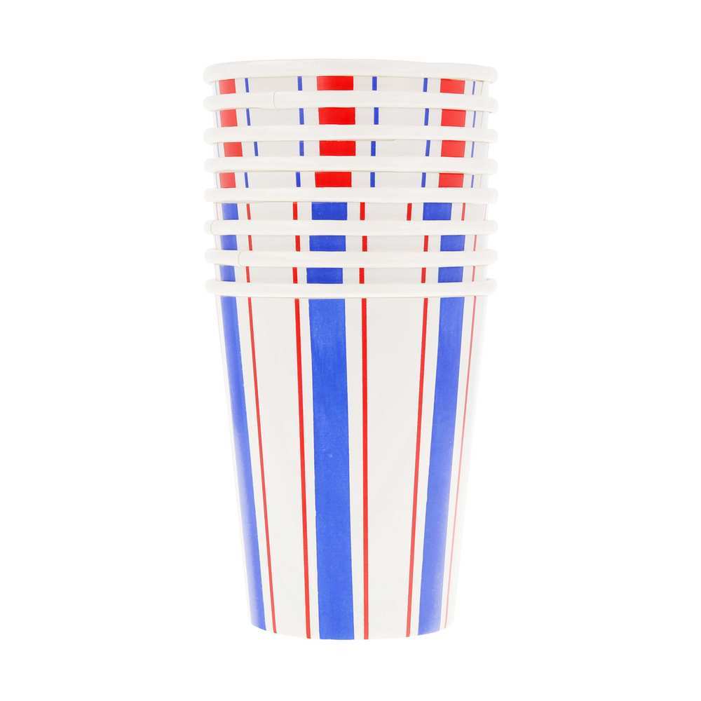 Dale un toque fresco y veraniego a tu celebración con estos vasos de rayas náuticas 🌊. Su diseño en rojo, blanco y azul transmite ese aire marinero perfecto para fiestas elegantes o cumpleaños infantiles llenos de diversión.