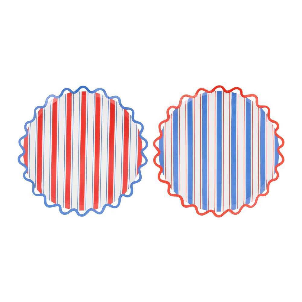 Lleva el encanto del mar a tu mesa con estos platos pequeños de estilo náutico 🌊. Sus elegantes rayas en rojo, blanco y azul junto con el borde ondulado crean un diseño fresco y veraniego perfecto para cualquier celebración.