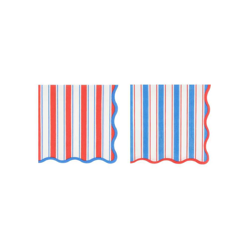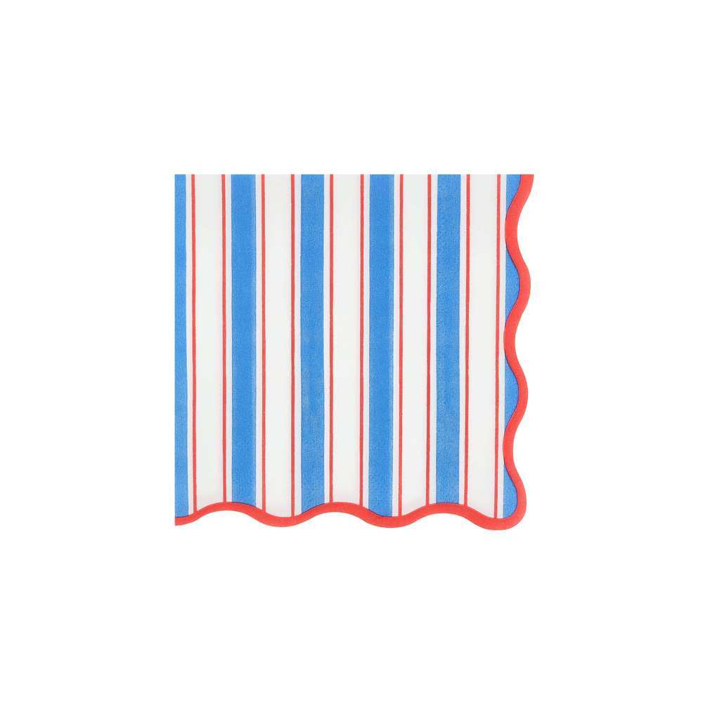 Añade un toque marinero y elegante a tu mesa con estas servilletas pequeñas de rayas náuticas 🌊. Su combinación de colores rojo, blanco y azul junto con el borde ondulado crea un efecto fresco y veraniego perfecto para cualquier celebración.