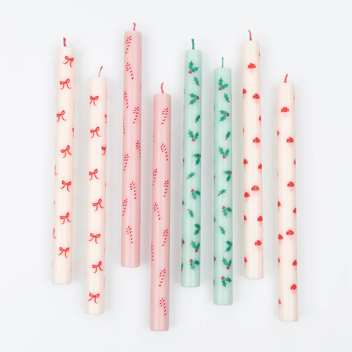 ¡Es tiempo de velas navideñas! ✨ Dale un toque cálido y sofisticado a tu decoración con este set de 8 velas decorativas, que combina patrones clásicos y contemporáneos en tonos suaves y detalles navideños encantadores.