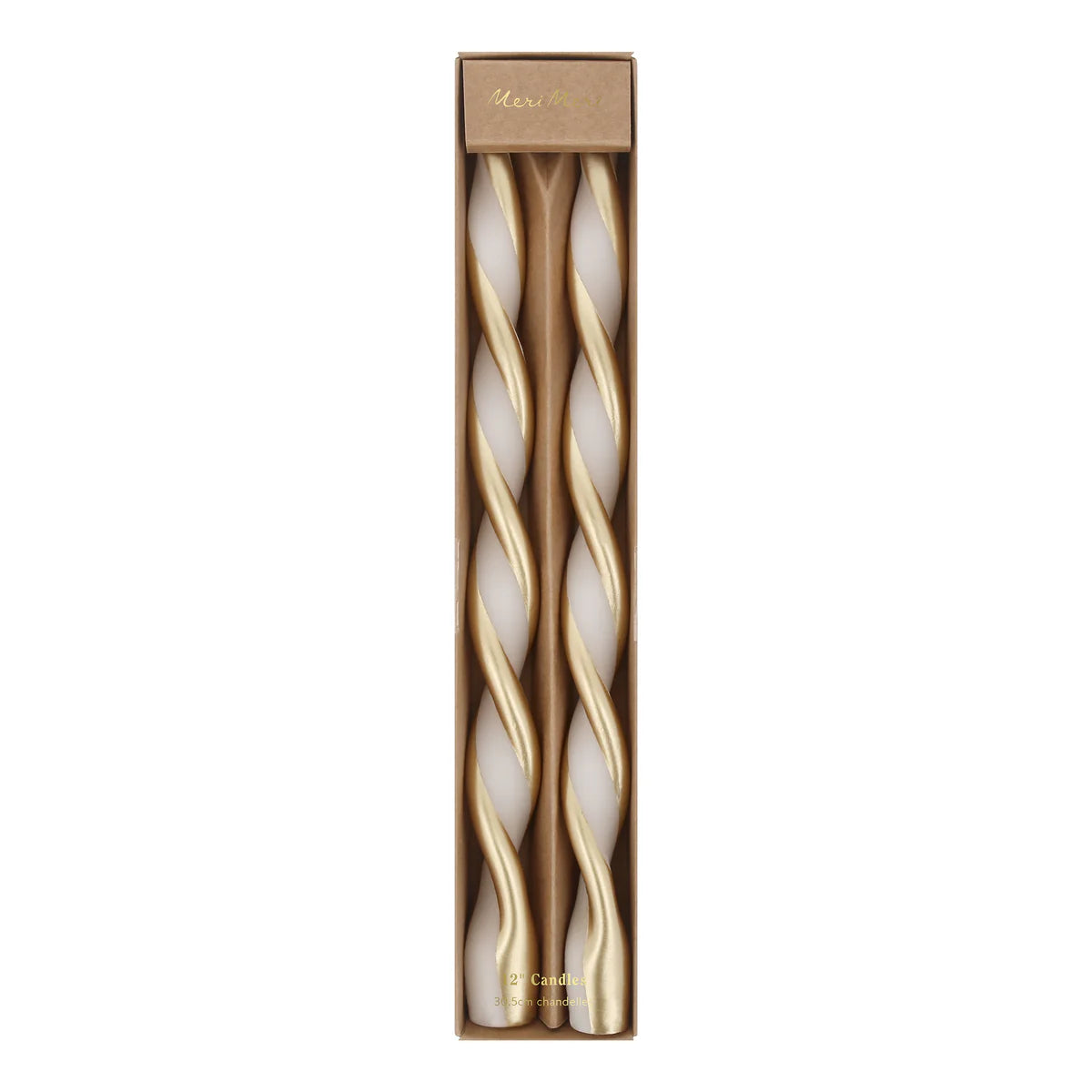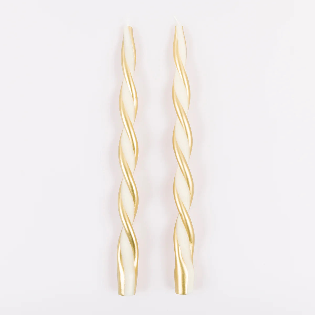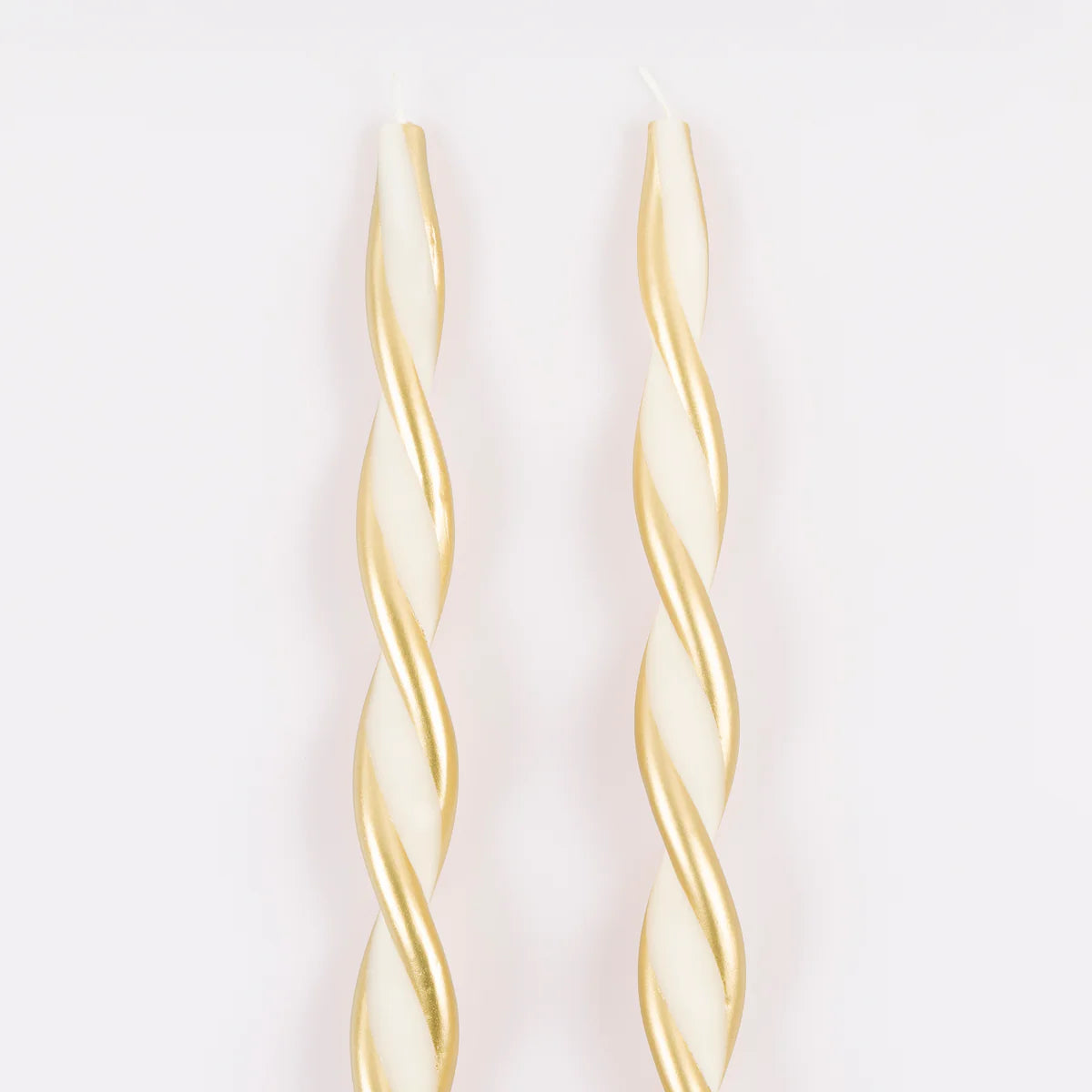 Aporta un toque de elegancia y brillo a tu decoración navideña con estas velas retorcidas con detalle dorado 🎄💛.
