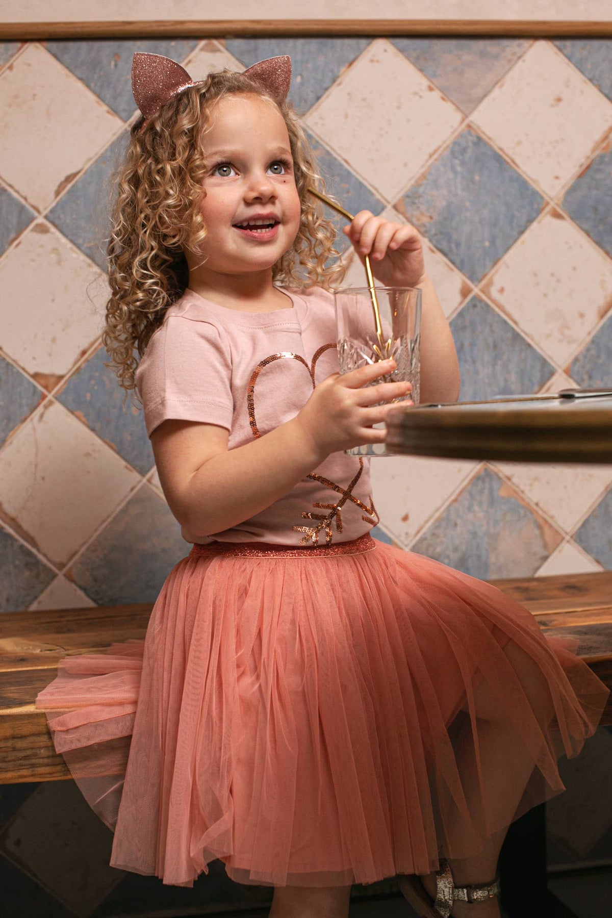Falda voluminosa de tul rosa amanecer hasta la rodilla. ¡Vibraciones instantáneas de princesa garantizadas! La falda está confeccionada con un forro de algodón y una cintura elástica brillante. ¡Disponible en 5 magníficos colores!