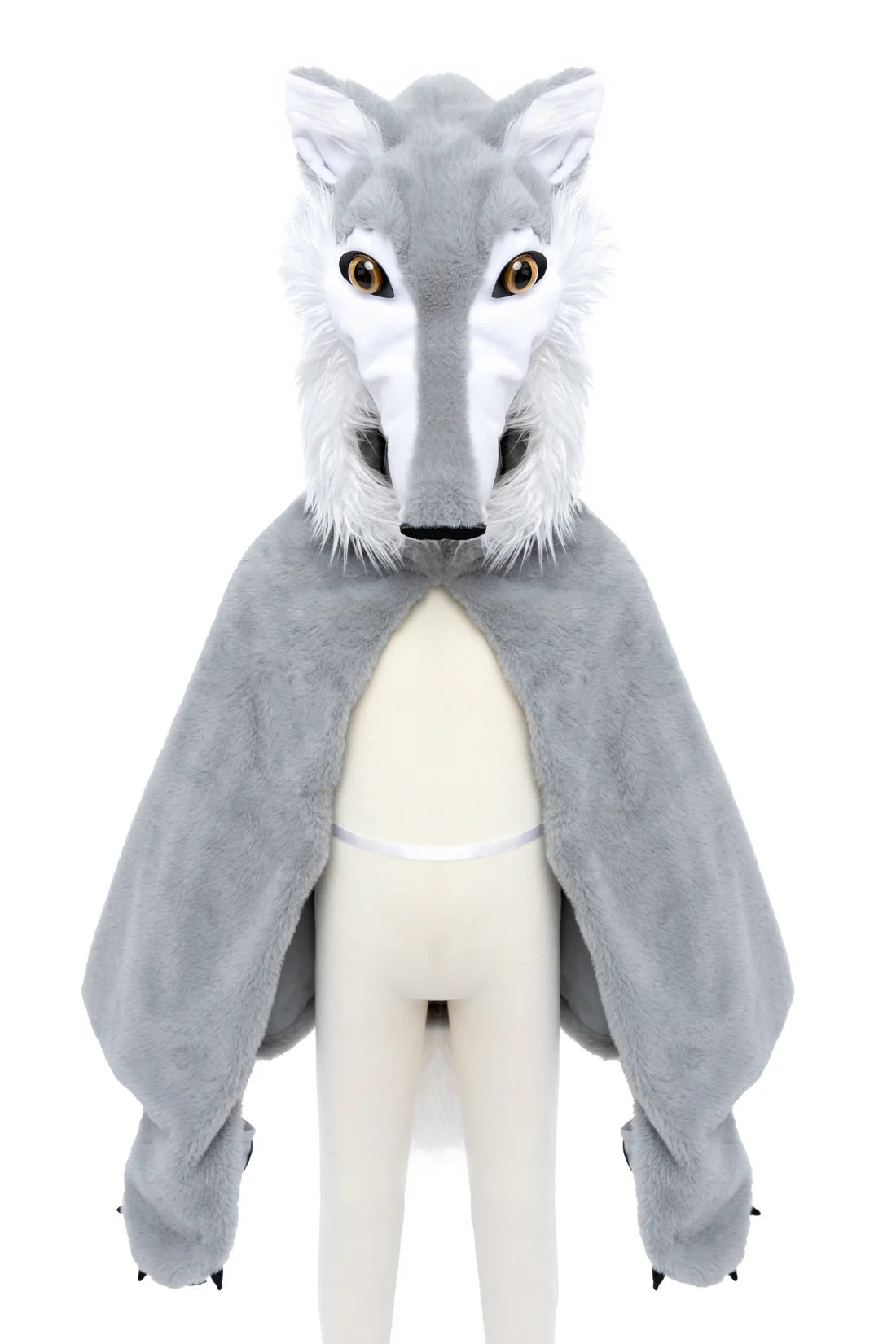 Diseñada con una cabeza de lobo realista, pelaje blanco alrededor del cuello, una suave cola y unas divertidas garras con detalles en negro, esta capa convertirá cualquier momento de juego en una gran aventura.