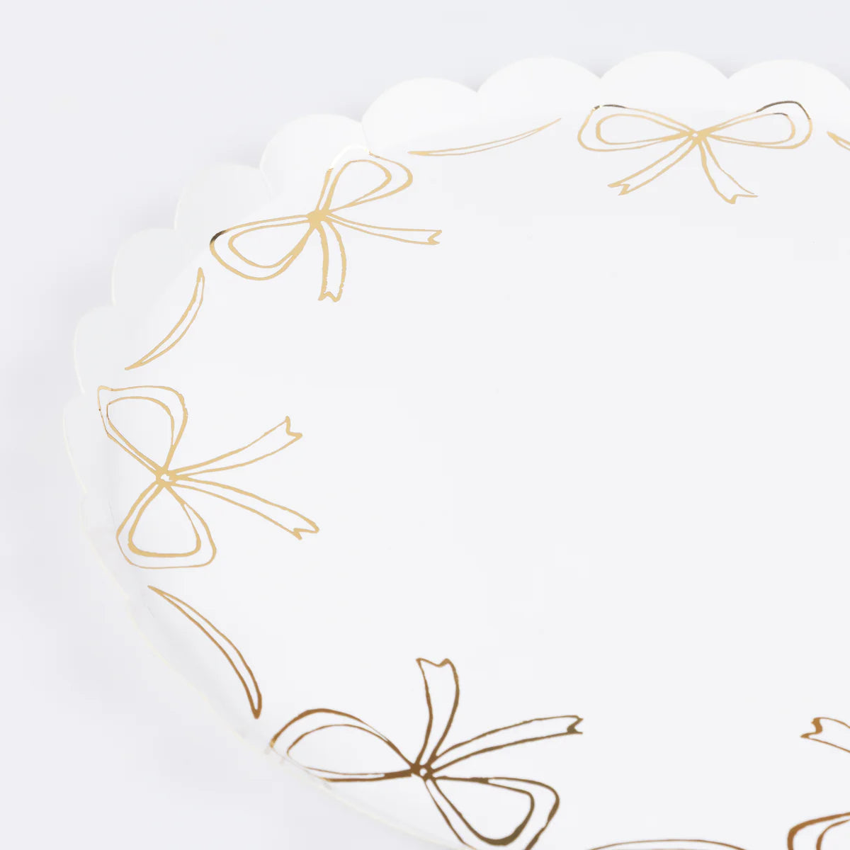 Añade un toque de elegancia instantánea a tu mesa con estos preciosos platos de papel decorados con lazos dorados 🎀✨.