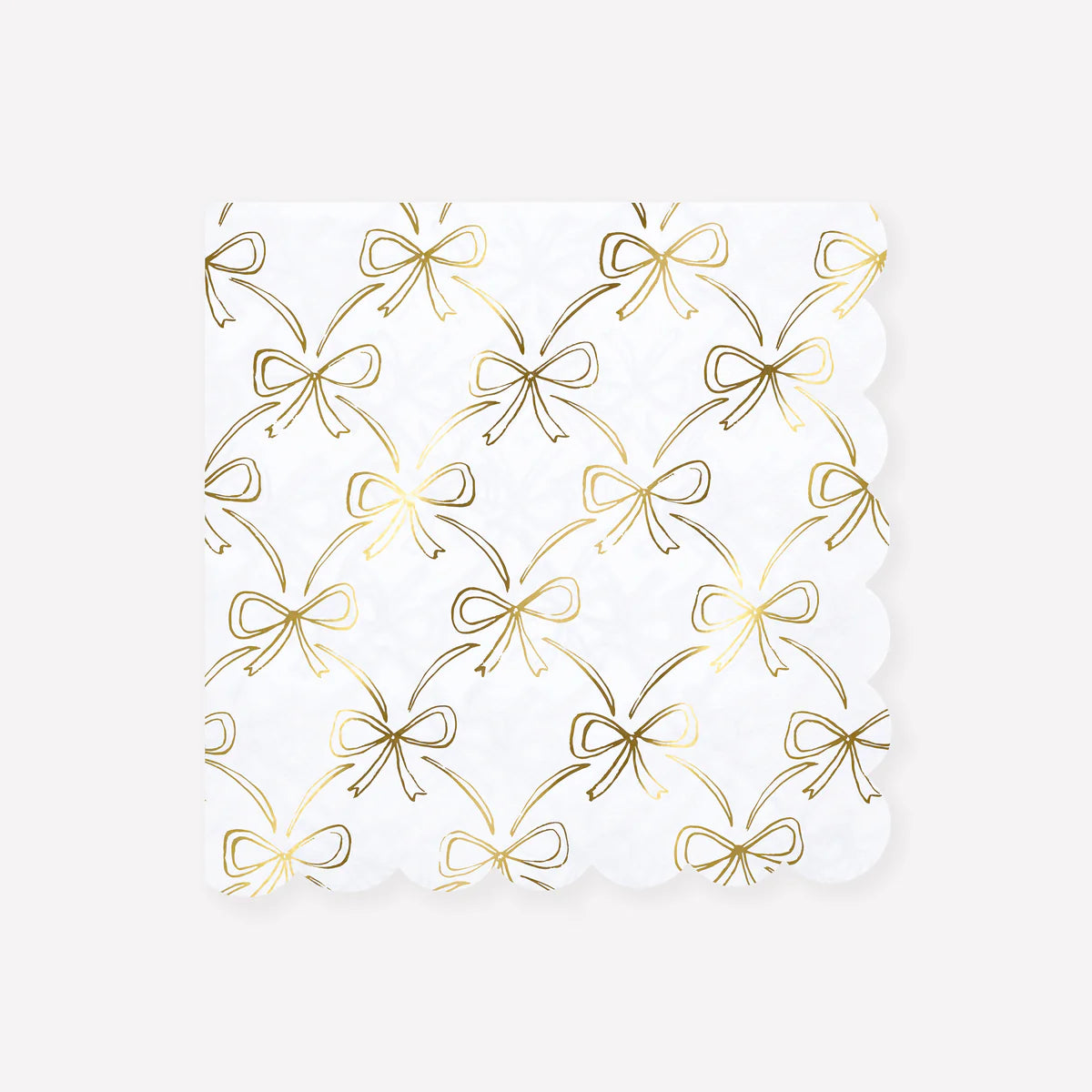 Añade un toque de glamour y sofisticación a tu mesa con estas elegantes servilletas de papel con lazos dorados 🎀. Su diseño combina la delicadeza de los bordes festoneados con el brillo de los detalles en foil dorado, creando una decoración que hará brillar cualquier celebración.