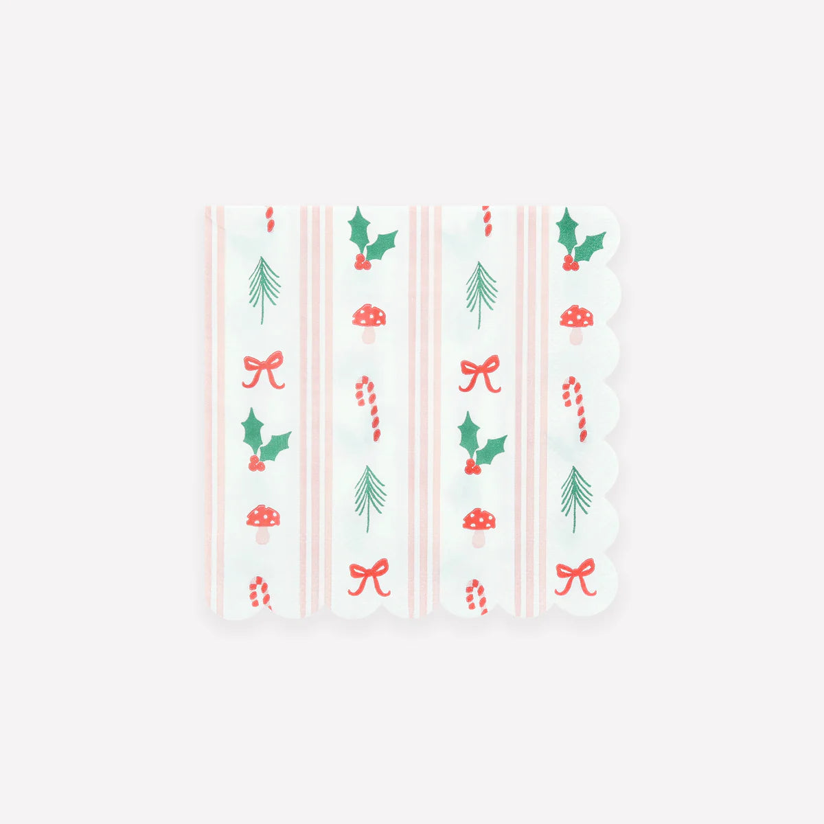 ¿Por qué conformarse con un solo diseño cuando puedes tener todos los clásicos de la Navidad? 🎅 Estas servilletas pequeñas de papel combinan los iconos más queridos —muérdago, bastones de caramelo, lazos, setas y abetos— sobre un fondo con rayas rosas inspiradas en los papeles pintados vintage.